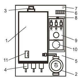 • Датчик давления исключает работу котла без теплоносителя, что обеспечивает безопасность вашего отопительной системы.
